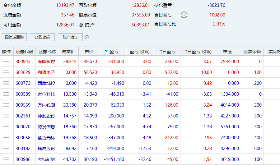 唉,何时能走出来,为什么总是执行不到位?神剑股份、利通电子、蓝色光标、捷成股份、志特新材都是拐头向下建的仓,明明写了纪律只做上升,就是管不住手,为什么就是改正不了?!